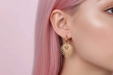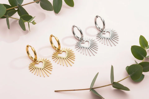 Boucles d’Oreilles Cœur Solaire Radiant Argentées ou Dorées